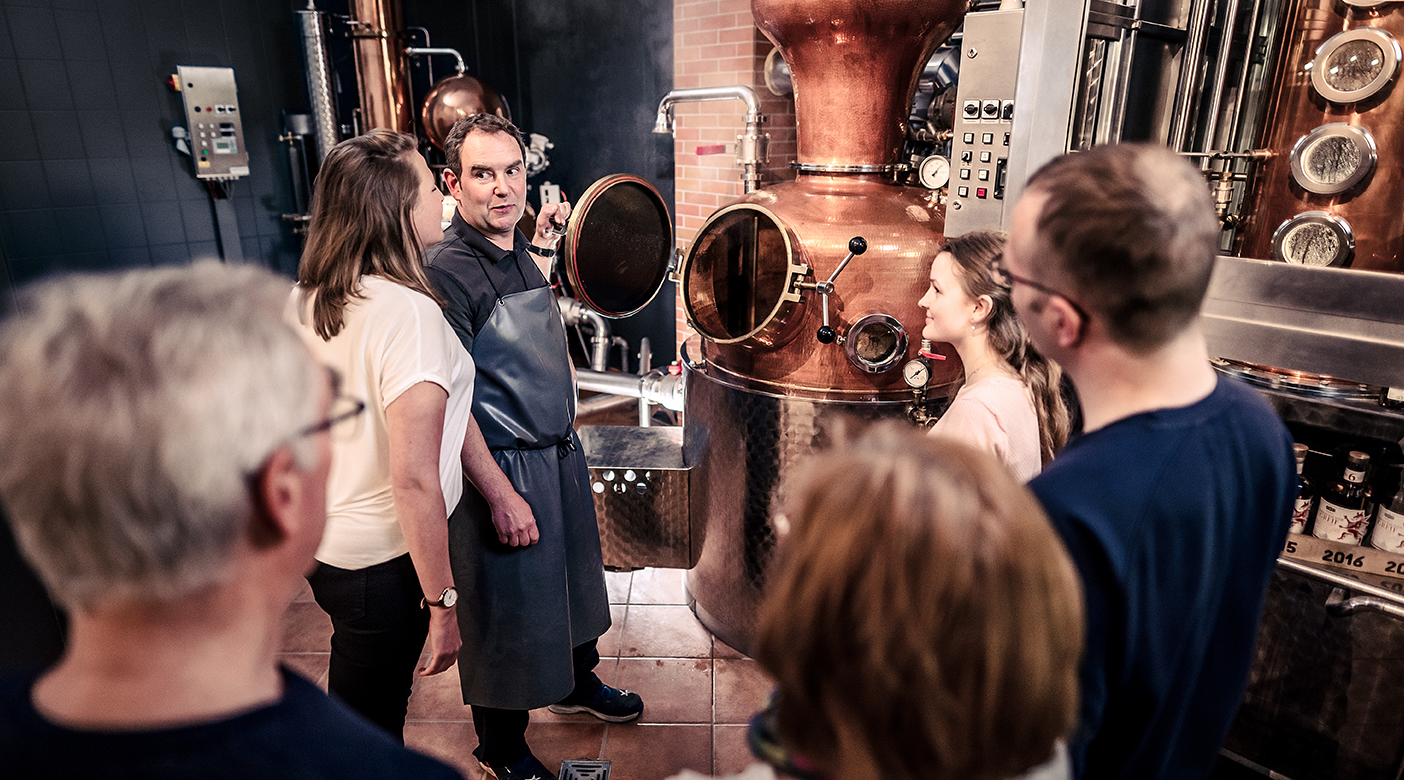 In den neu gestalteten Räumen der Brennerei wartet eine unverwechselbare Markenwelt, in der sich authentische Materialien und historische Bausubstanz harmonisch ergänzen.