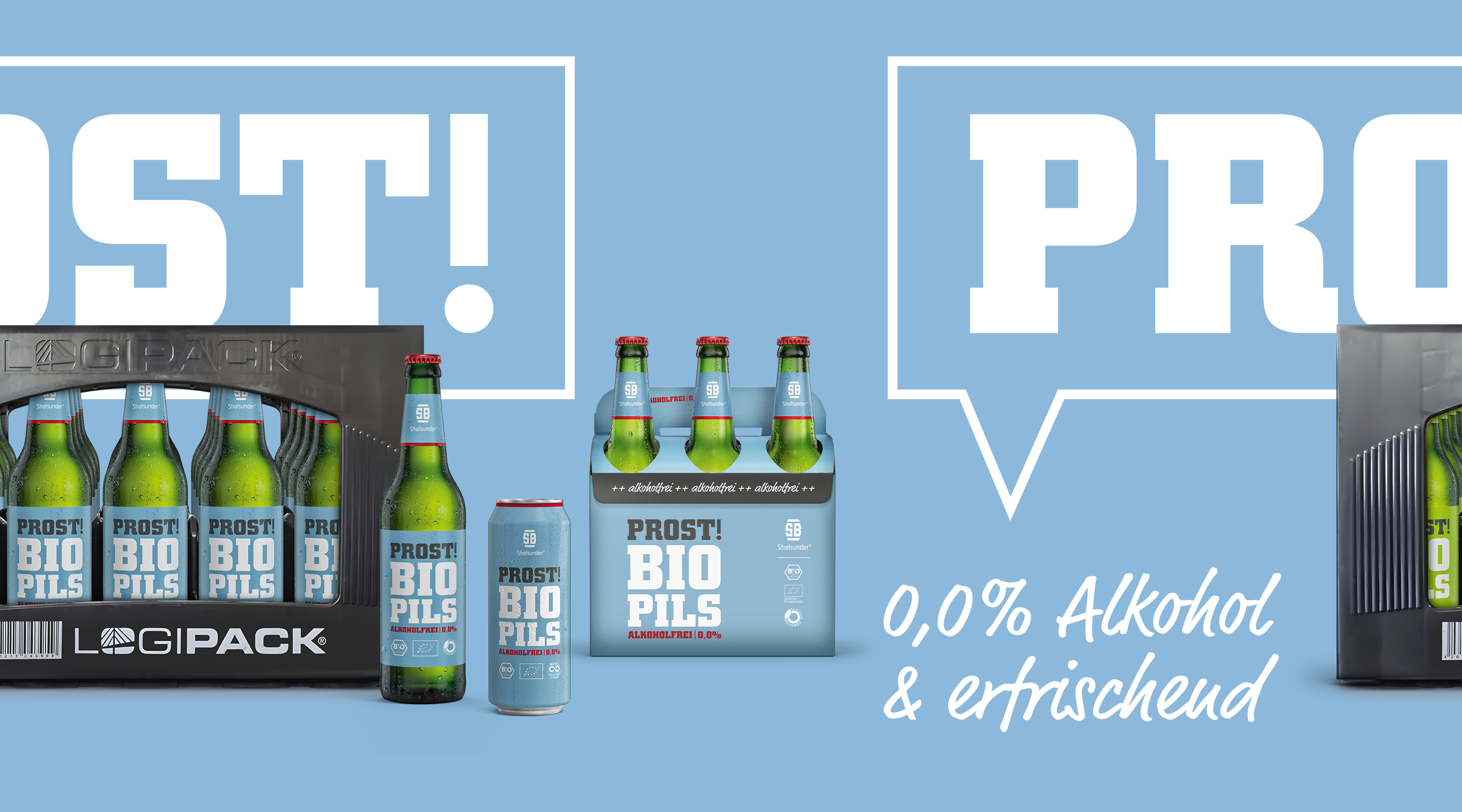 Ein erfrischendes Prost mit der grünen Flasche – dem neuen Stralsunder BIO-PILS. Mit diesem Bier lässt sich nicht nur der Moment mit Freund*innen einfangen, sondern auch die Kraft der Natur, denn die ist in den Zutaten enthalten. Höchste Qualität sowie Nachhaltigkeit stehen hier an erster Stelle. Genau das beschreibt der Name „BIO-PILS“ klar und ohne Umwege. Ebenso reduziert und bewusst plakativ hat wertmarke den Look der neuen Flaschen designt. Grün kommt als DIE Symbolfarbe für Bio und Natur zum Einsatz. Hellblau ist bereits von anderen alkoholfreien Produkten bekannt und lässt sich durch die roten Details leicht von seinem Promille-Pendant unterscheiden. Das neue Bier tut nicht nur dem Gaumen gut, sondern auch unserer Umwelt: Bio, vegan, Mehrweg – prominent auf der Verpackung zu sehen. Ein gutes, schnörkelloses Bier für Abende in bester Gesellschaft. Stralsunder. Bio für alle.