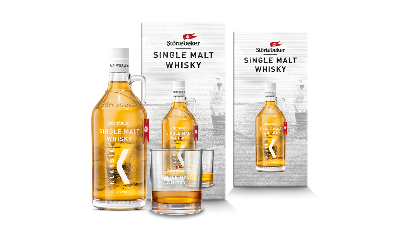 Die Störtebeker Whisky-Range wächst, Keyvisual und Growlerdesign bleiben. Um die Sorten KLASSIK und RESERVE optisch zu differenzieren, entwickelte wertmarke neue Gestaltungselemente. Während der Whisky-Klassiker mit einem weißen K gekennzeichnet wird, zieren den RERSERVE drei gestapelte Fässer, welche die Entstehungsgeschichte dieser Whisky-Sorte illustrieren. In der silbergrauen, nordisch-kühlen Geschenkverpackung finden Growler wie Tumbler Platz – und Whiskykenner echte Brennkunst.