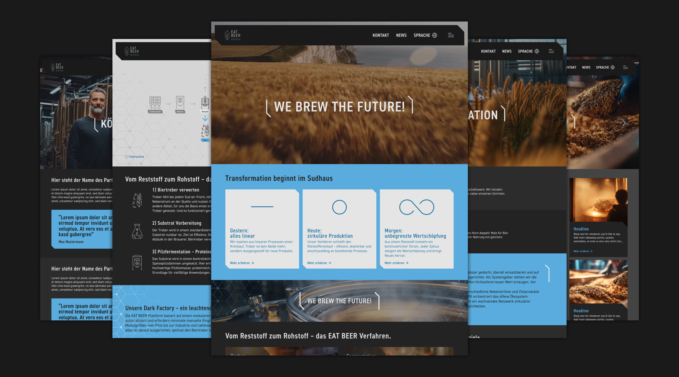 Für das Biotech-Start-up EAT BEER Biotech entwickelte wertmarke ein UI/UX-System, das wissenschaftliche Prozesse emotionalisiert und Kreislaufwirtschaft visuell verständlich macht.