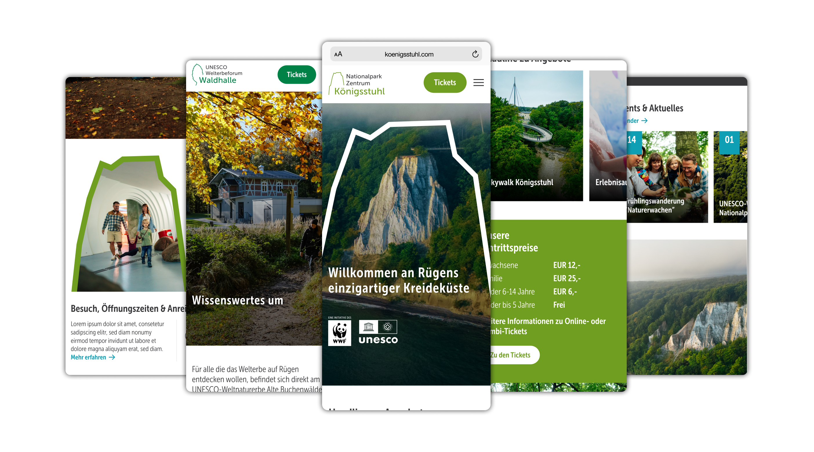 wertmarke entwickelte für das Nationalpark-Zentrum Königsstuhl ein neues UI/UX-Konzept, das Nutzerfreundlichkeit, Barrierearmut und visuelle Identität konsequent vereint. Eine klare Struktur führt Besucher:innen durch die vielseitigen Themenwelten des Zentrums – von Ticketinformationen über die UNESCO-Ausstellung „Waldhalle“ bis hin zu saisonalen Events.